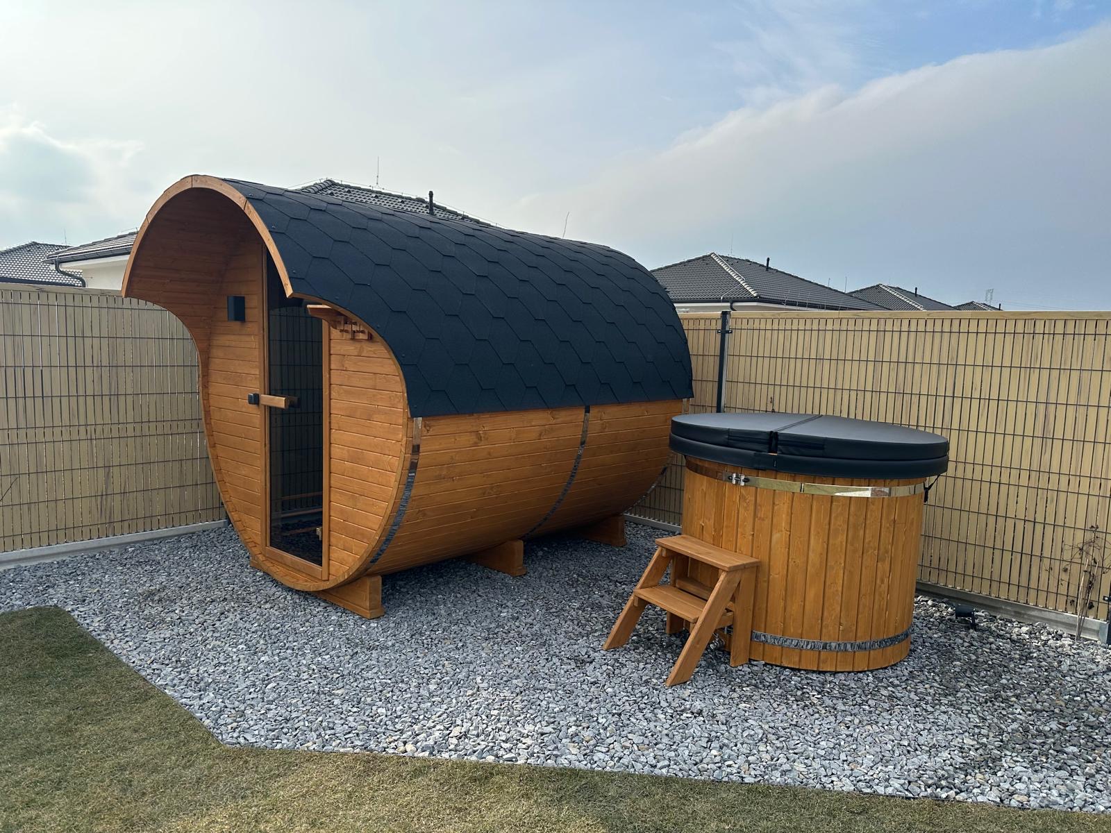 DREVENÁ SUDOVÁ SAUNA S OCHLADZOVACIOU KAĎOU